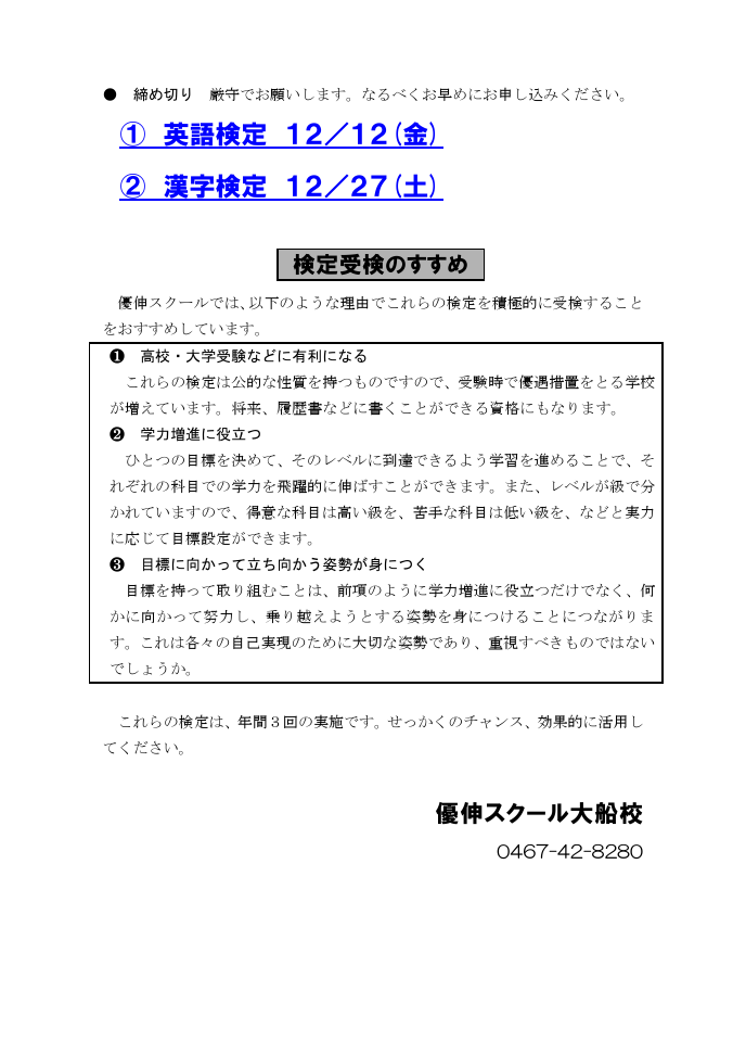 「検定生」に登録しておくと、案内や対策問題送付、無料補習などのメリットがあります。